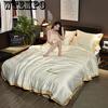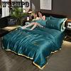 Housse de couette en flanelle d'hiver bleu foncé, housse de couette en molleton de corail doux, épaisse et chaude, housse de literie, taies d'oreiller