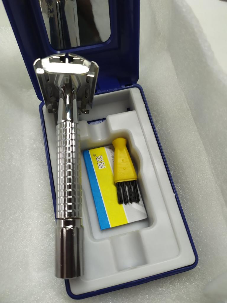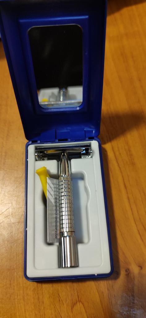 J'ai reçu le rasoir ! Je me suis rasé, la lame fournie est mauvaise, j'ai mis la mienne. Je me suis rasé soigneusement pour ne pas me couper. Eh bien, c'est un rasoir pas mal dans l'ensemble !