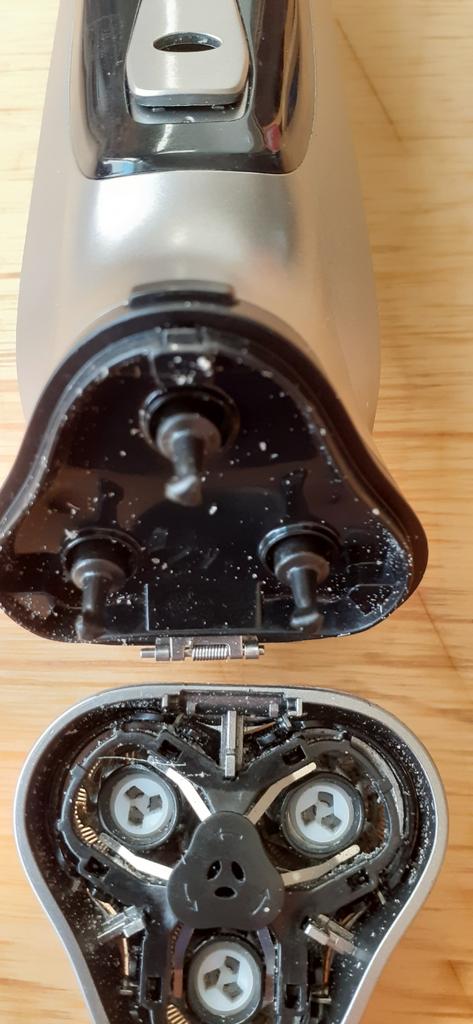 Bonjour, je viens de me raser et j'ai voulu le nettoyer et en ouvrant la tête de rasage. Il est déjà cassé ou en panne. Voir photo. C'est dommage et la confiance diminuer. Pour déverrouiller la tête de rasage ,il suffit de pousser sur le bouton prévu à cette effet. Je viens de remarquer l'élément cassé, regarder à gauche ou ce n'est pas cassé et comme un bracelet de montre on peut le remettre cassé à droite ce n'est plus possible