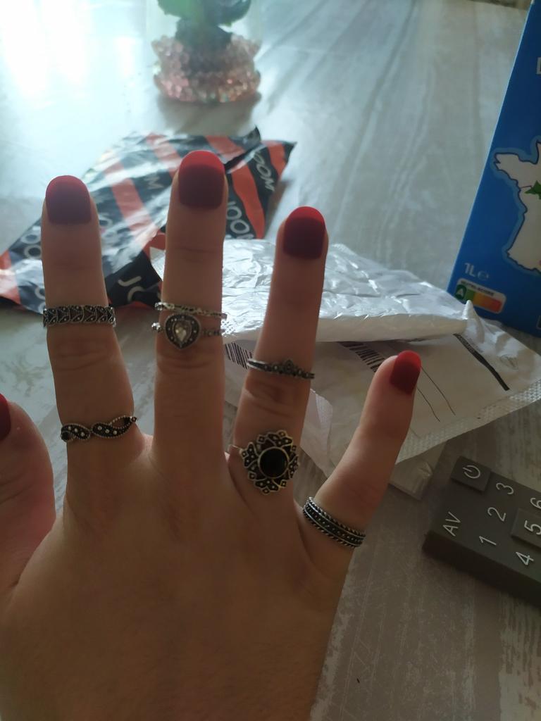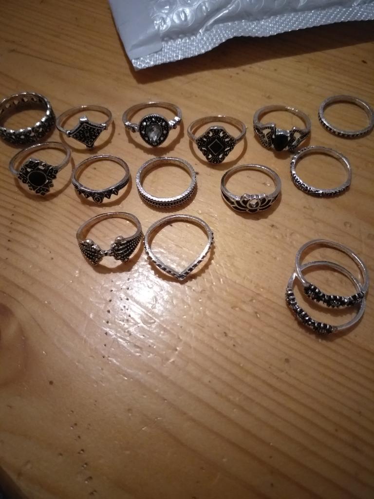 Superbes, très jolies, variées! Je suis satisfaite de cet achat, plein de bagues bon rapport qualité prix, seul bémol elles ne me vont qu'a l'annulaire et l'auriculaire ou sur les phalanges des autres doigts.