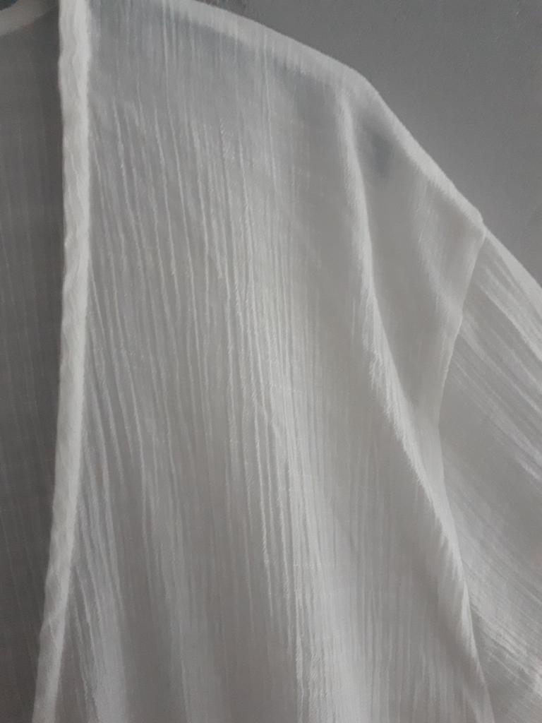 Cardigan loose à manches 3/4 . Le tissu est composé de 65 % de rayonne et de 35 % de polyester. 💐💝 Il est léger, légèrement transparent, a un aspect gaufré et agréable à porter. 👍💓 Les coutures et les ourlets sont propres. Les finitions sont correctes. 💞😁 Les tailles correspondent au descriptif. Le modèle est oversize. Arrivé très froissé. 😭😤 Je conseille 💝👍💐