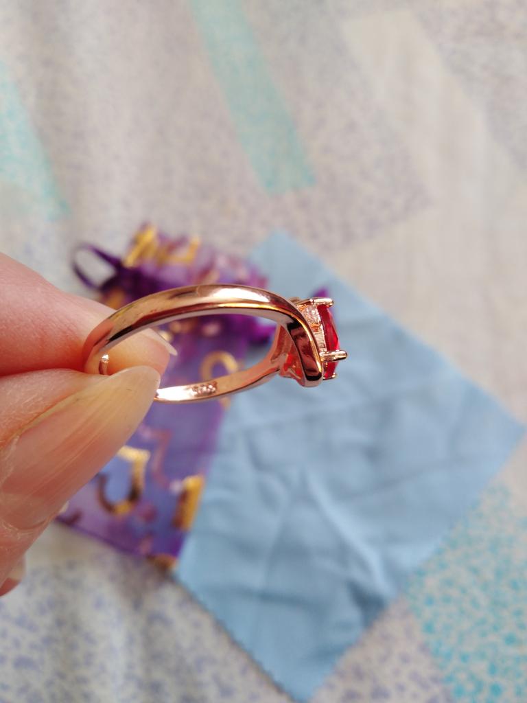 ⭐⭐⭐⭐⭐ Bague en argent véritable couleur or rose avec pierres rouges - Lindon La commande a été livrée en 31 jours sous la forme d'un envoi Hermès et était bien emballée dans une enveloppe à bulles. De plus, la marchandise était emballée dans du papier bulle. Il s'agit d'une superbe bague enduite de couleur or rose de la marque "Lindon", qui a une pierre de rite sertie au milieu. De plus petits strass blancs l'entourent sur le côté. L'un est composé de 92 % d'argent et de 8 % de cuivre, recouvert d'or rose. Les pierres sont en zircone. Tout est très filigrane et de haute qualité et je n'ai trouvé aucun défaut. La bague est de taille ajustable et s'adapte à tous les doigts. Cependant, je l'ai mis sur le bâton de mesure tel qu'il est arrivé afin que vous puissiez lire les mesures vous-même. Dans l'ensemble, je suis vraiment très satisfait du produit et du vendeur et serais heureux de recommander les deux. Instagram : mad_lammy Twitter: SandraAust4