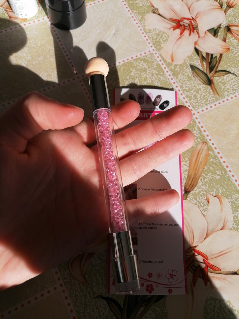 Ils affichent recevoir un tampon pour pouvoir attraper le dessin et le transférer sur ongle sauf que je n’ai pas reçu le tampon. Juste la plaque. Donc pour le moment elle est inutilisable. Étant en matière solide, je ne peux pas l’utiliser seule et appliquer directement sur l’ongle. Cependant, les motifs sont jolis et bien faits