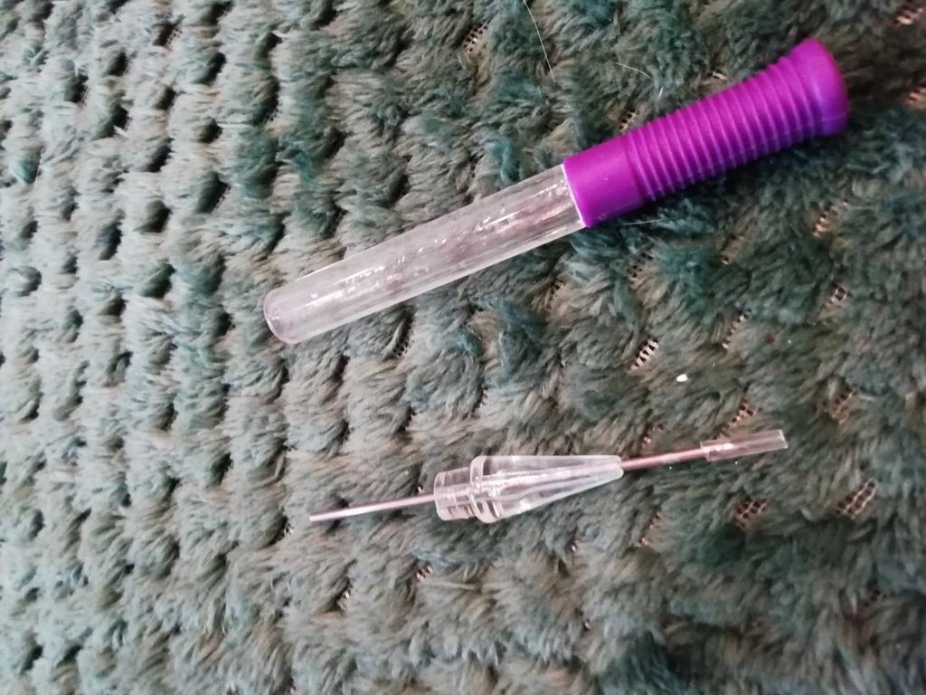 L'aiguille a une poignée cassée, l'aiguille elle-même a de la colle dessus, il est impossible de travailler avec ! Au lieu de deux enfile-aiguilles, un seul a été mis. Remboursez l'article !