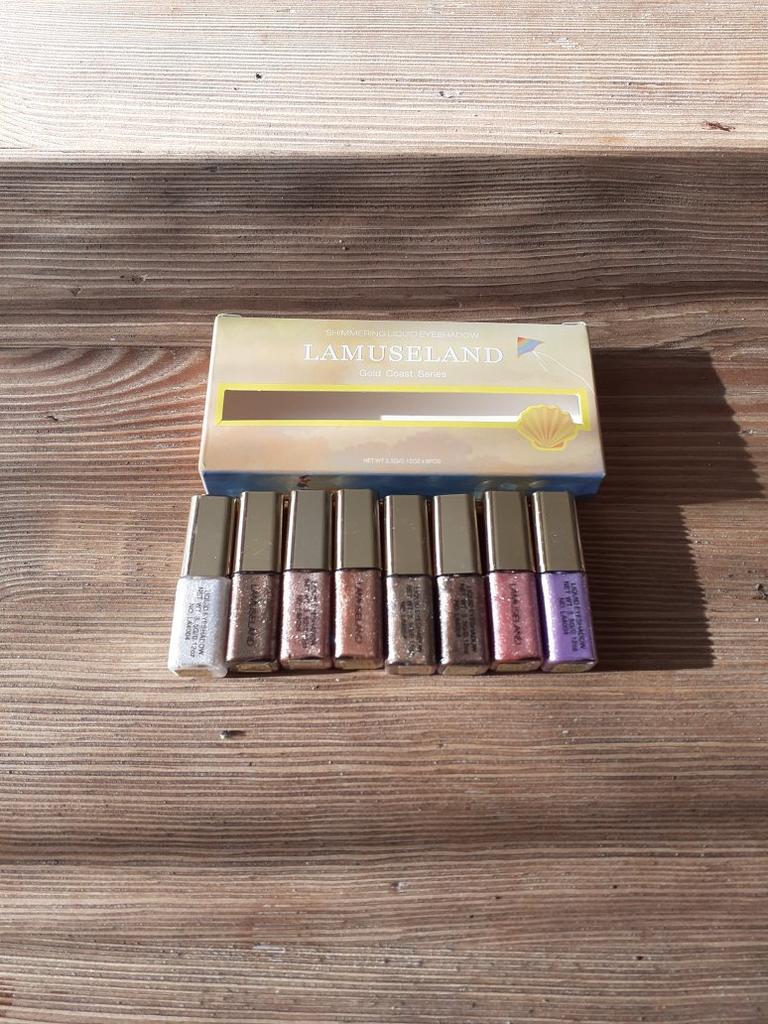 LAMUSELAND Kit de voyage petite taille 8 couleurs/ensemble, ombre à paupières liquide brillante, paillettes de beauté, fard à paupières imperméable et durable, maquillage pour les yeux