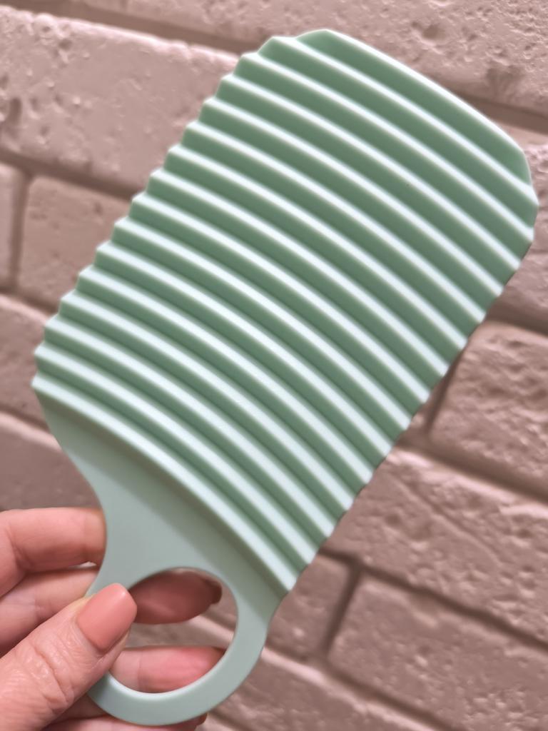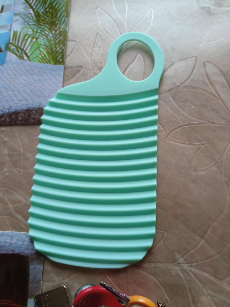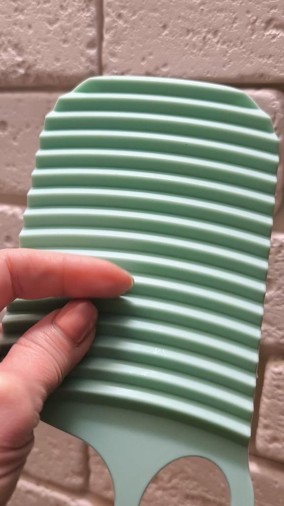 Je l'ai essayé, c'est très pratique pour laver les chaussettes et diverses taches sur les mains. La première photo est la vraie couleur. Petite planche à laver pratique😃
