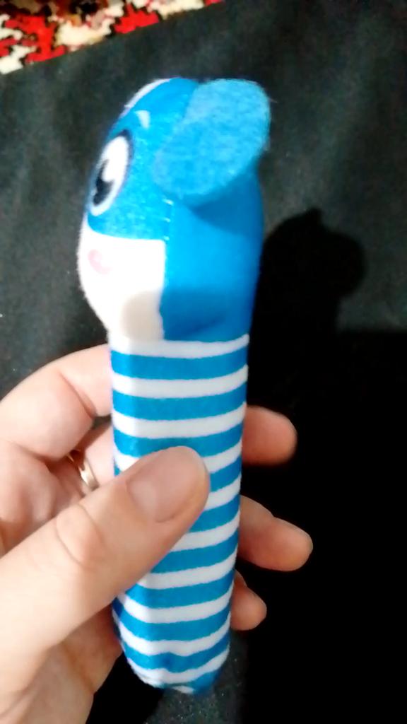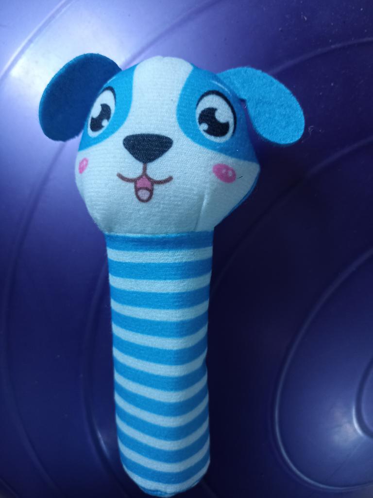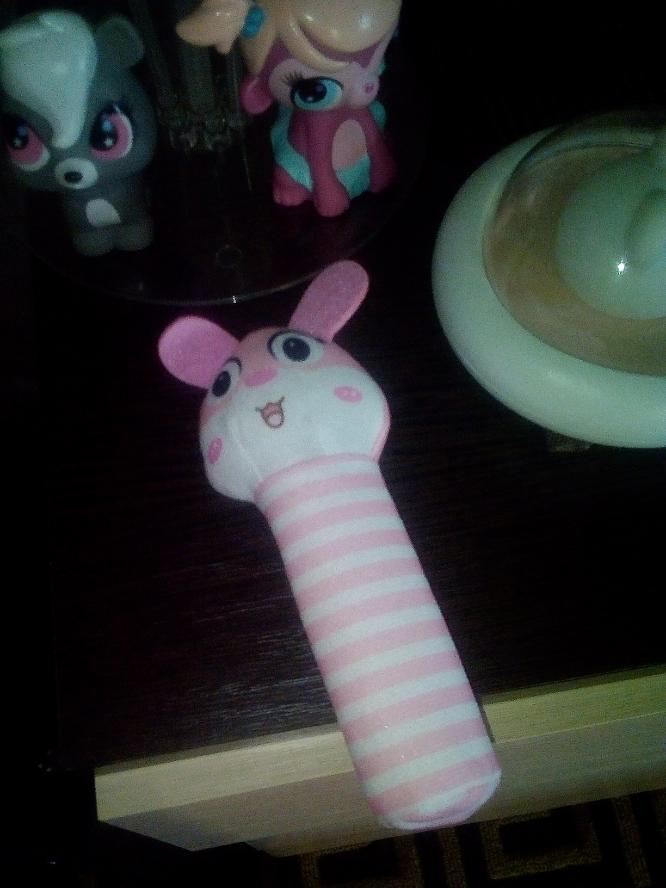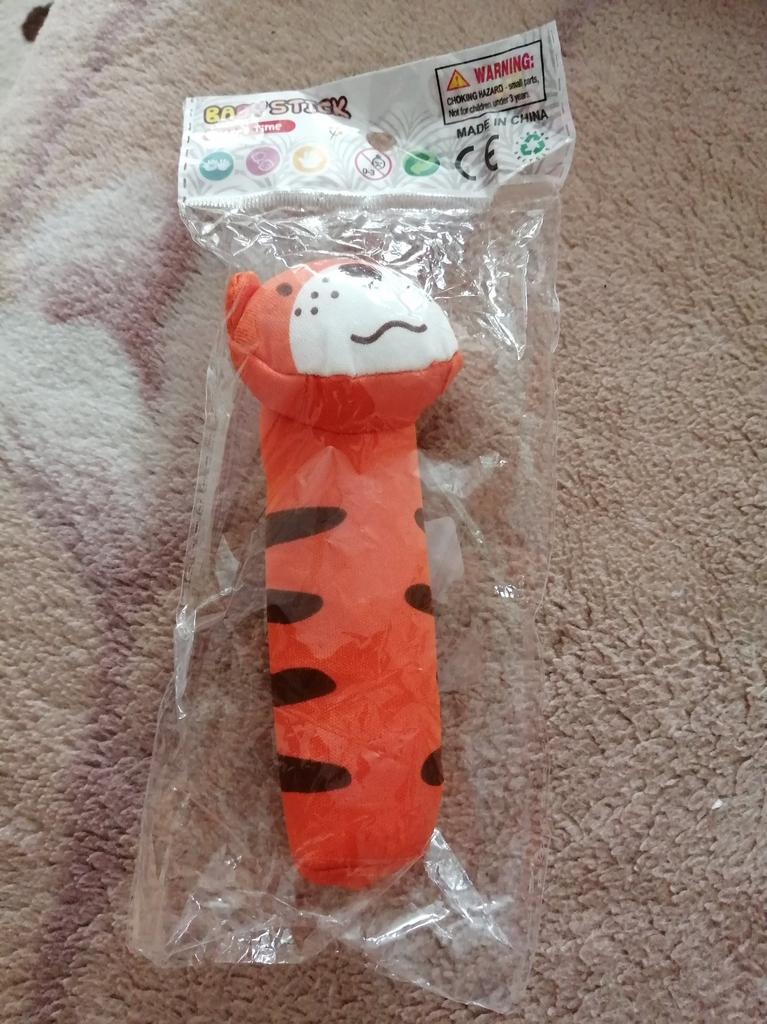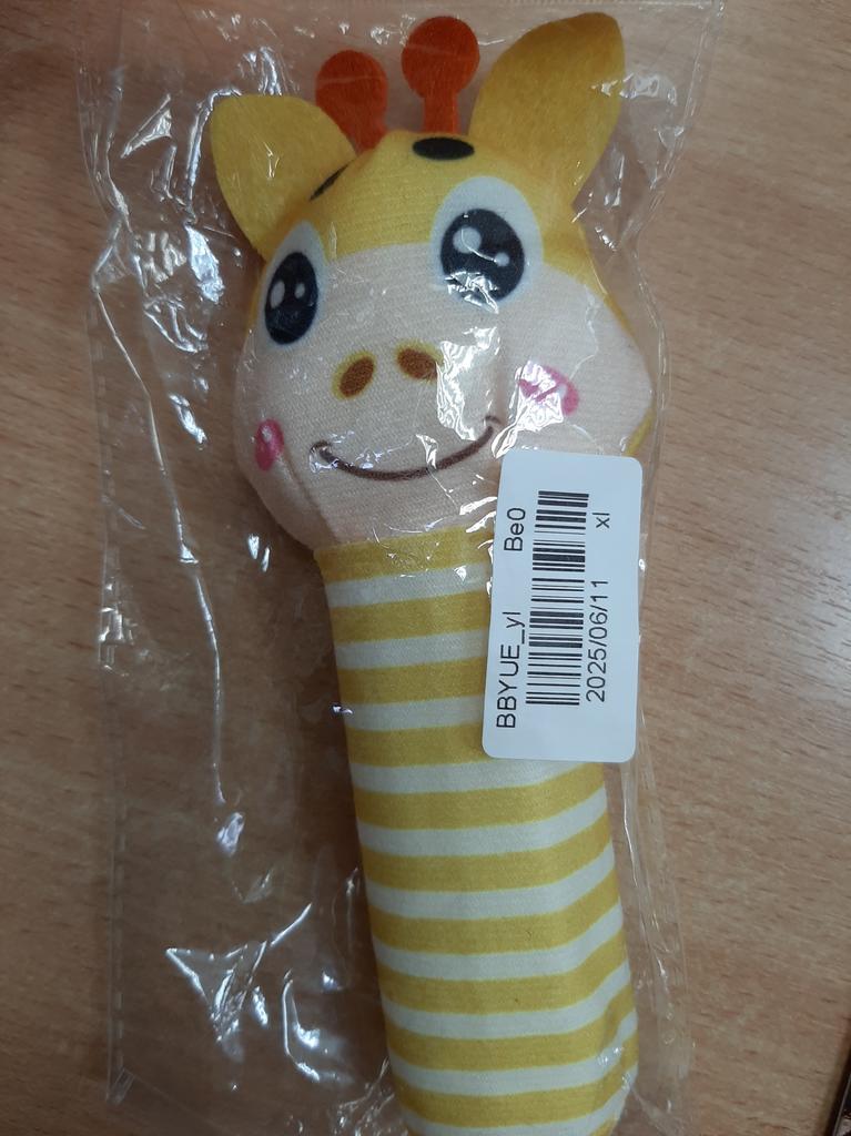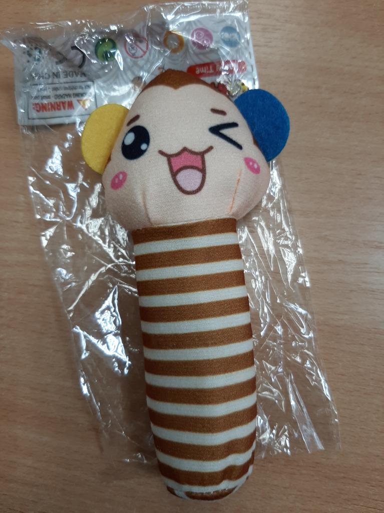 Ce hochet est trop mignon, lorsqu'on appuie sur le manche il fait du bruit, tiendra bien dans la main de bébé. Livraison en 1 mois.