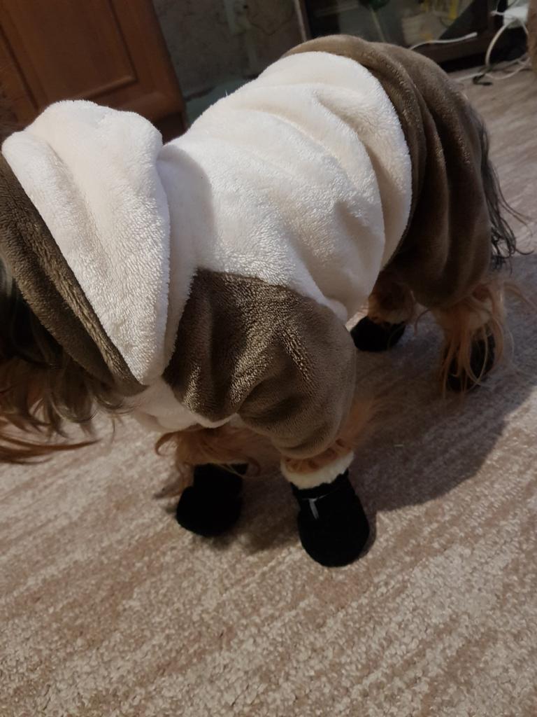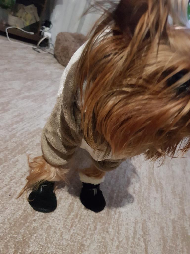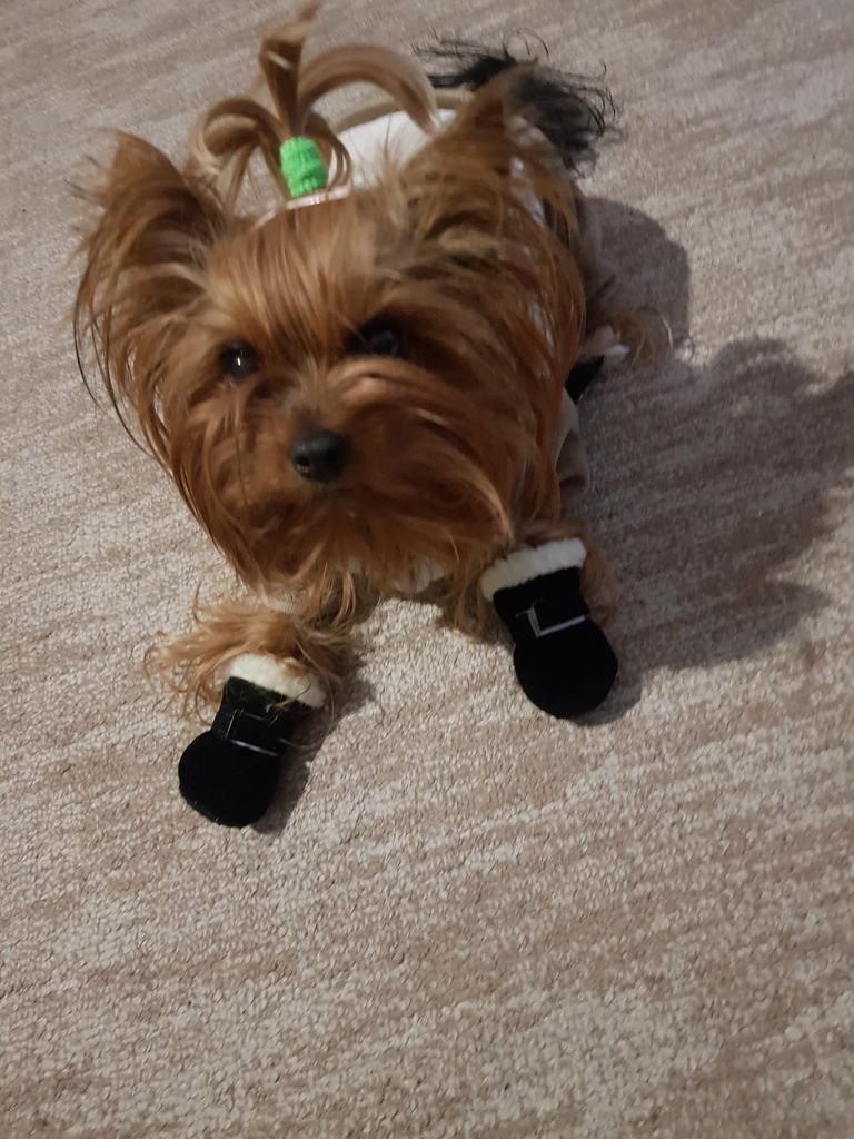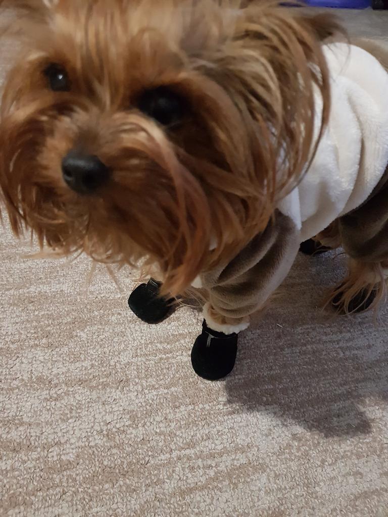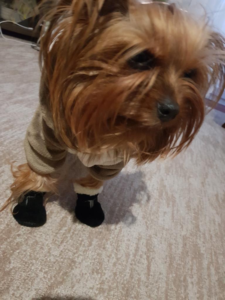 Super bottines ! La taille 2 convient à un yorkshire de 4 kg. Durent 2 mois avec un usage quotidien ! La semelle pourrait être plus solide et imperméable.