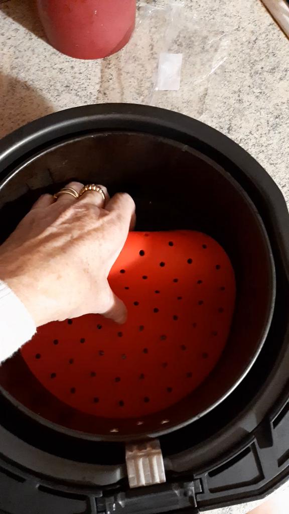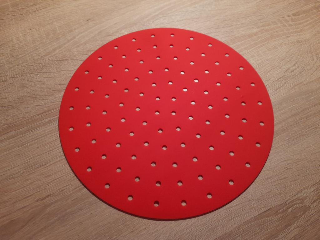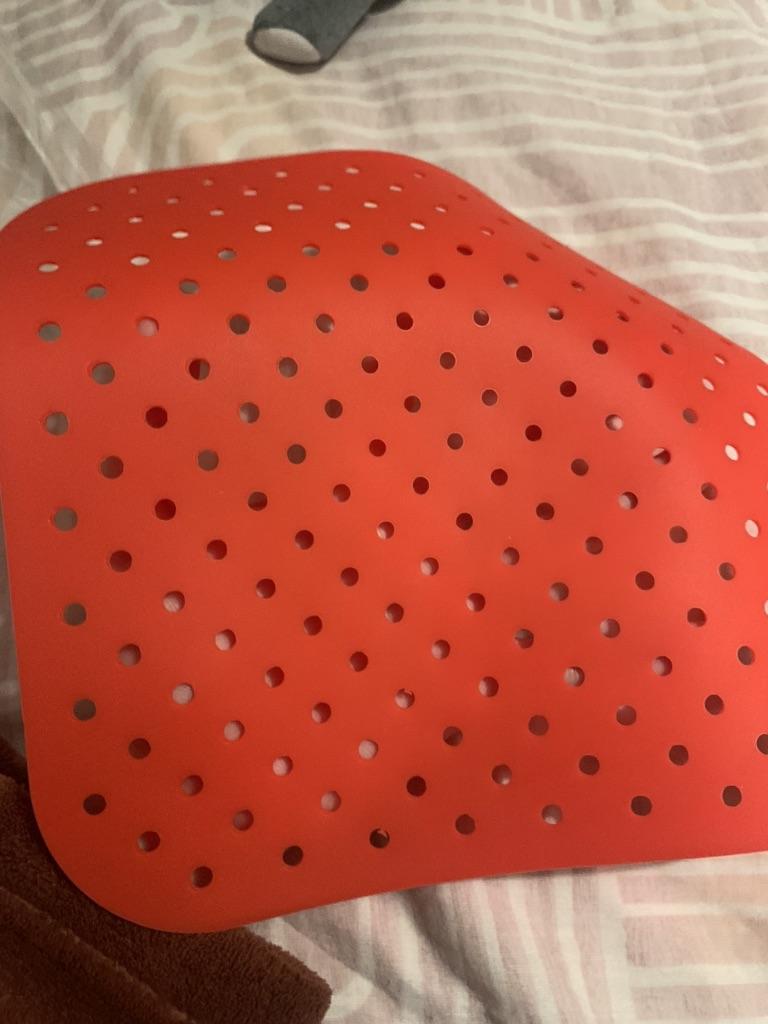 S'adapte exactement à ma friteuse à air chaud Cosori. Les bâtonnets de poisson et le filet de poisson étaient très bien cuits. Le tapis en silicone est une alternative au papier pour friteuse à air. Facile à nettoyer au lave-vaisselle.