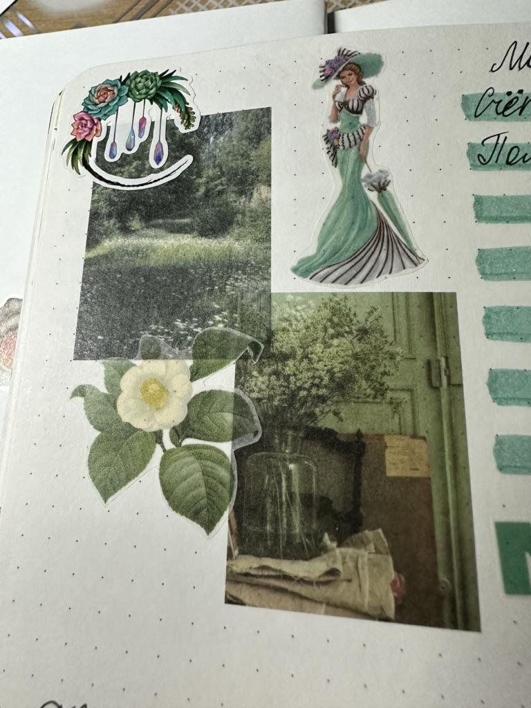 Petits autocollants. La couleur principale est le vert. Ce sont des autocollants. Lorsque vous retirez le film de la surface adhésive au dos, vous pouvez le coller sur votre agenda.