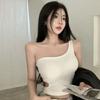 Camisoles pour femmes, couleur unie, asymétrique épaule dénudée, chemise à Base rembourrée, débardeur sans manches, pull léger, haut court