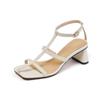 Meotina Femmes en cuir véritable t-strap chaussures talons épais été boucle sandales bout carré talon haut chaussures pour dames abricot Beige