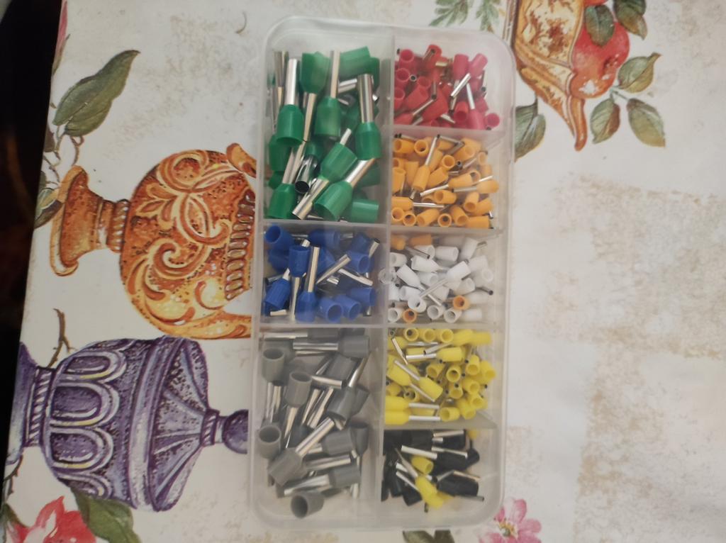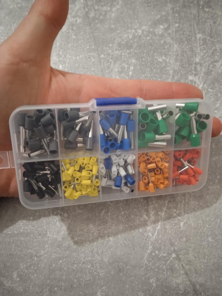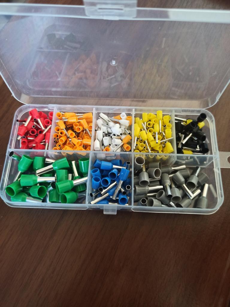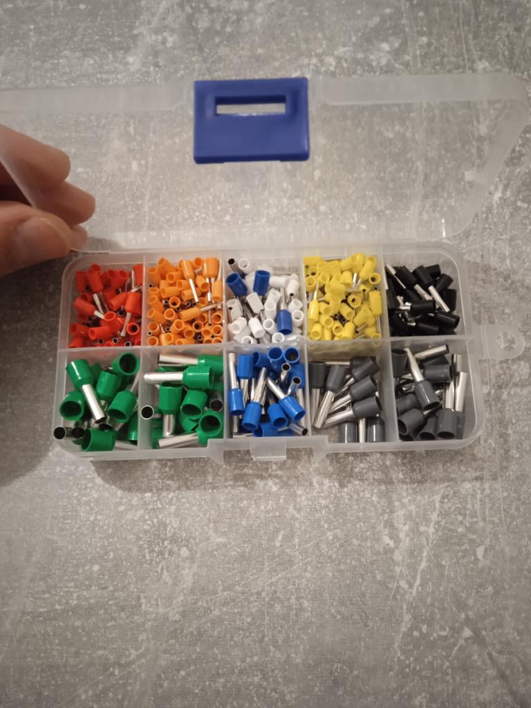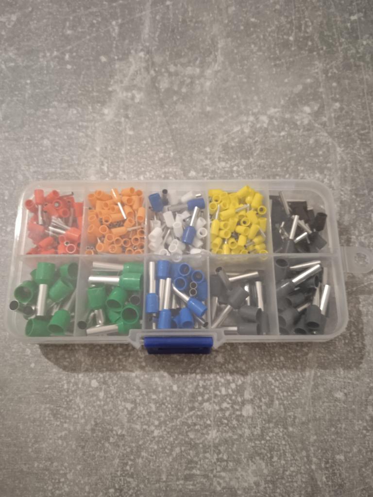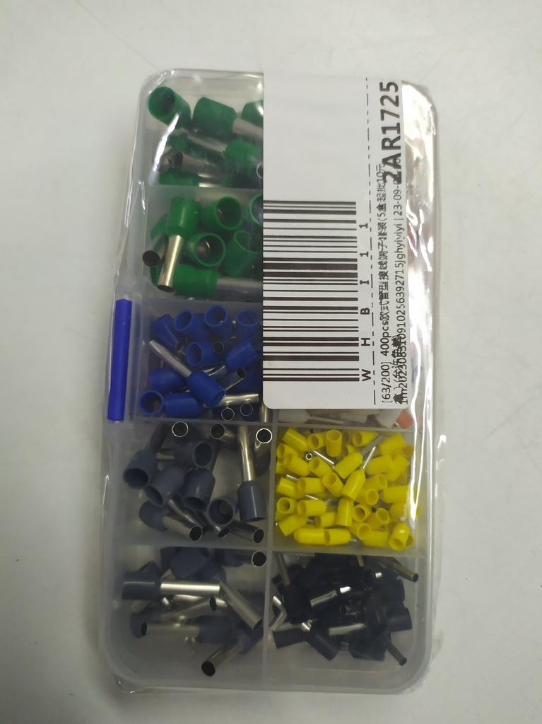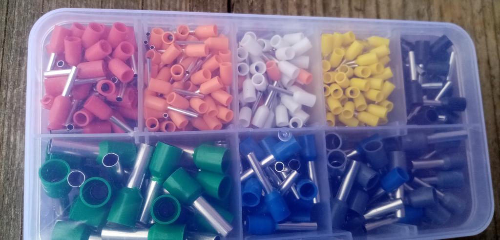 400 gaines pour extrémités de câbles de différentes tailles. Ils sont pré-triés en dix compartiments dans une boîte de tri. Ils sont faciles à travailler et fonctionnent bien. 👍🏻👍🏻👍🏻👍🏻👍🏻👍🏻