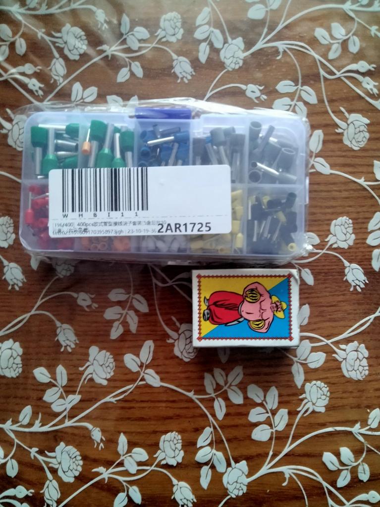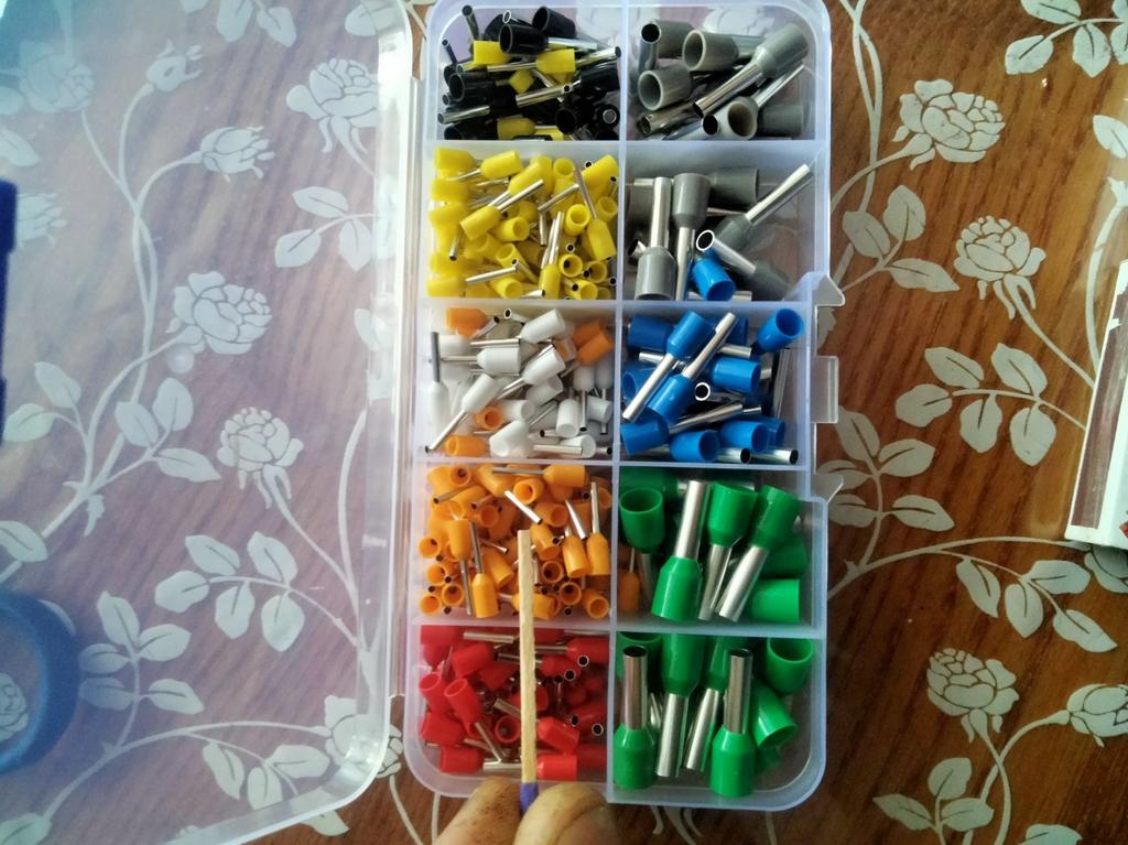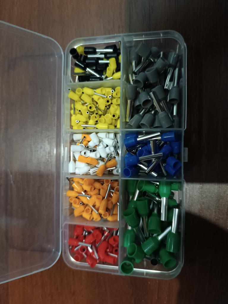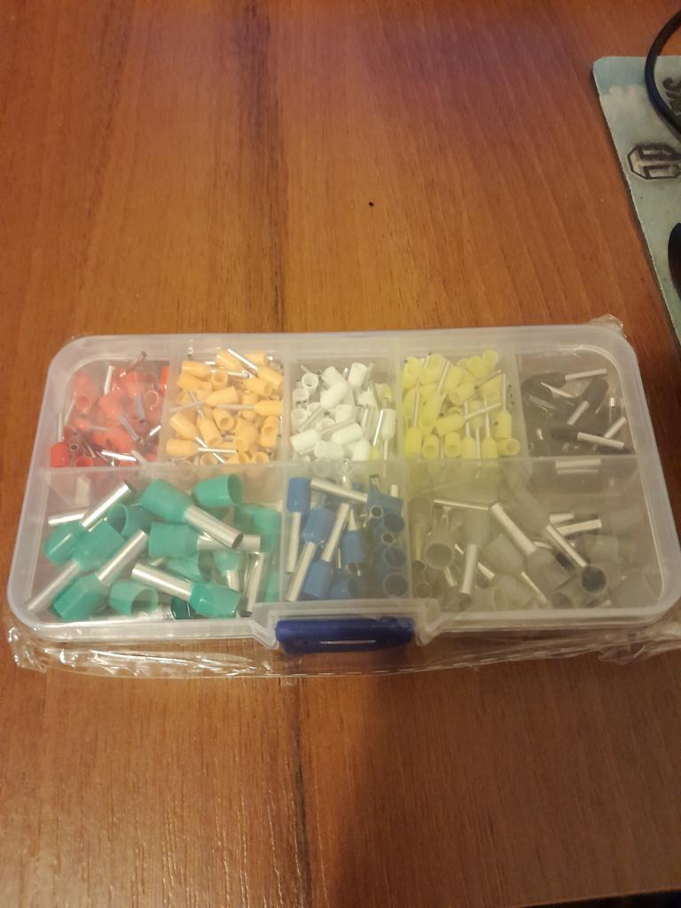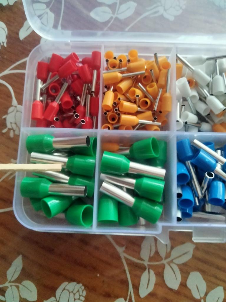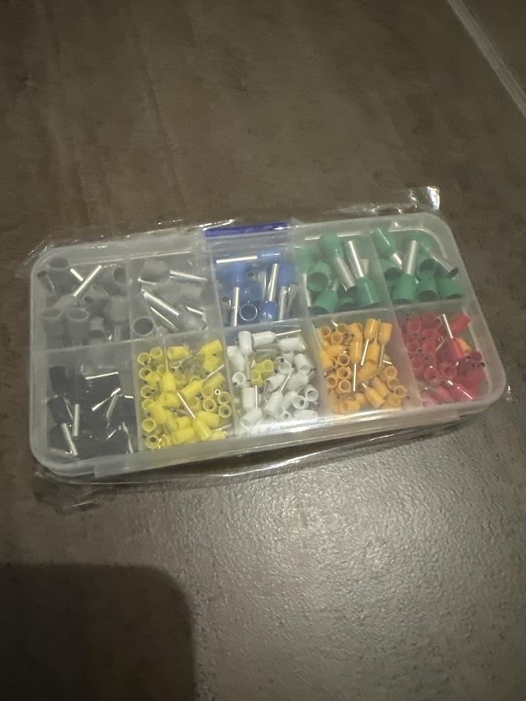 400 gaines pour extrémités de câbles de différentes tailles. Ils sont pré-triés en dix compartiments dans une boîte de tri. Ils sont faciles à travailler et fonctionnent bien. 👍🏻👍🏻👍🏻👍🏻👍🏻👍🏻