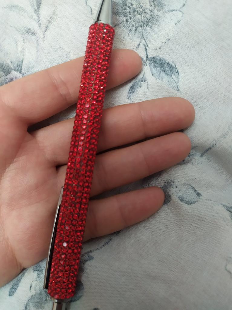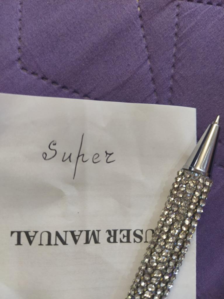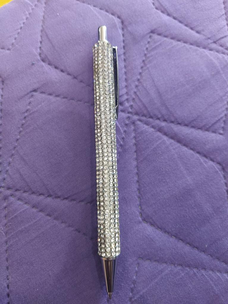 Beau stylo. Transforme le tout. Ça brille. Il a de l'encre noire.