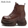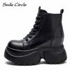 Bottines en cuir véritable pour femmes, bottines à plateforme avec fermeture éclair latérale, à la mode, à fond épais