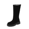 Meotina Bottes mi-mollet en cuir véritable pour femmes, bout rond, talons épais, plateforme, laine, daim, chaussures de mode pour dames, hiver 40