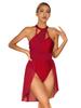 Costume de danse de gymnastique en mousseline de soie pour femmes, robe de danse lyrique, Costume contemporain moderne, col licou, vêtements de danse en mousseline de soie