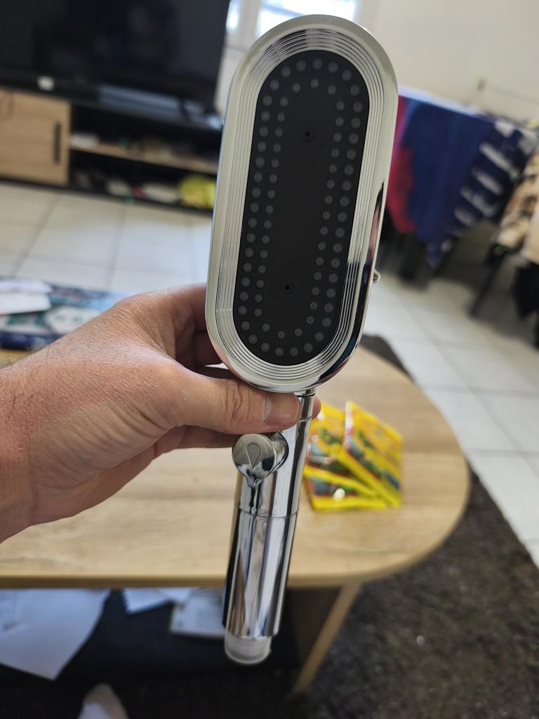 L'arrêt d'eau et le réglage de la pression sont parfaits. La douchette est agréablement grande et la salle de bain n'est pas totalement éclaboussée même lorsqu'on se lave les cheveux dans la baignoire.