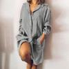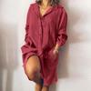 Robe chemise en coton et lin pour femmes, boutonnée, col en v, manches longues avec poche, longueur au genou