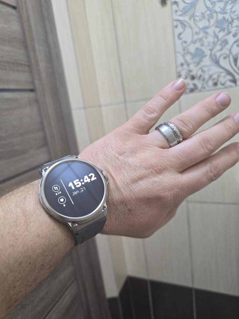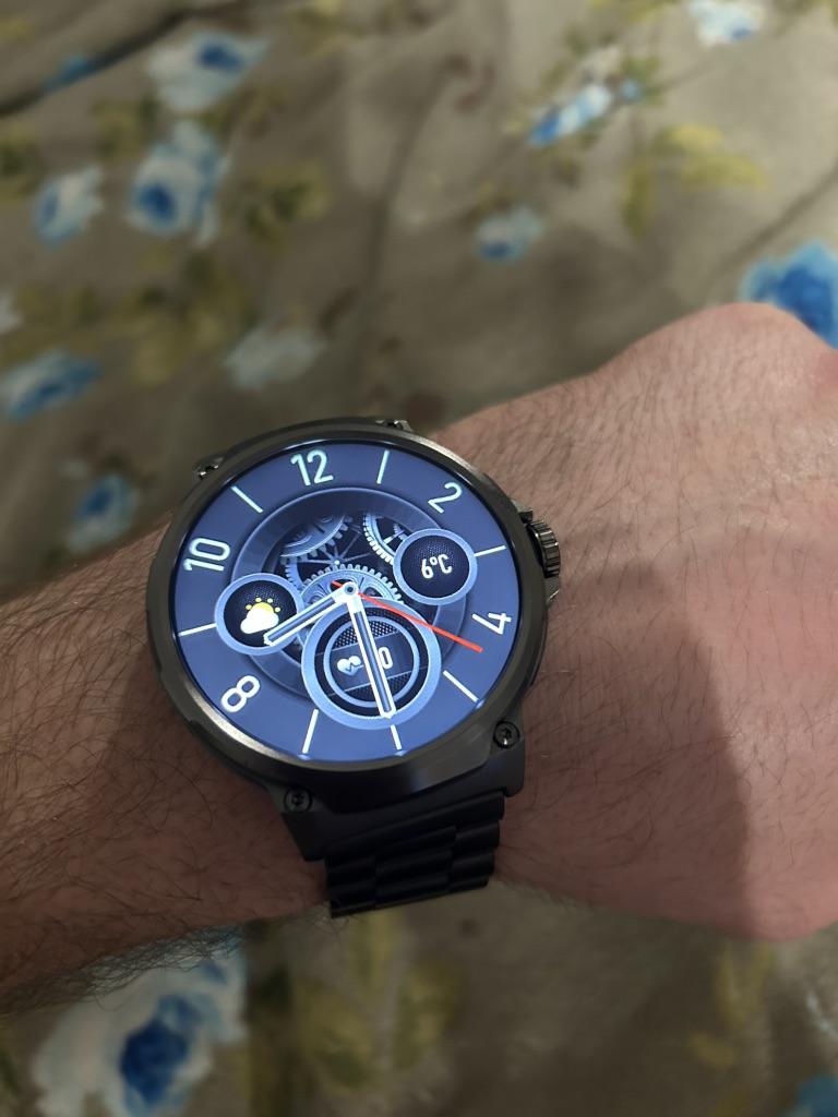 Il a un très bon rendu, la qualité de fabrication, la présentation, l'image affichée est de première classe, il faut le coupler avec son téléphone pour avoir accès à toutes les capacités. Sans couplage, même la possibilité de régler la date et l'heure ne fonctionne pas. Cela ne fonctionne pas. Après l'avoir utilisé pendant le deuxième jour, la batterie est à 80%, ce qui est probablement un assez bon résultat étant donné que j'ai beaucoup joué avec. Grand écran et grandes dimensions, mais je suis positivement surpris jusqu'à présent