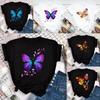 T-Shirt imprimé pétale de papillon coloré pour femmes, manches courtes, col rond, t-shirts graphiques mignons, vêtements hauts féminins