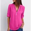 Pull Mode Femme Col en V Couleur Unie Fermeture Éclair Tempérament Satin Manches Longues Chemise Décontractée