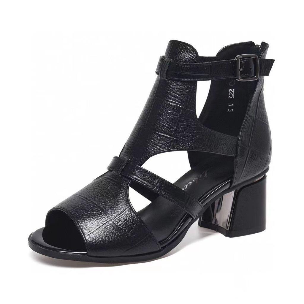 Sandales romaines carrées à talons creux pour femmes, sandales à boucle en bec de poisson à bout ouvert et à talons épais, commerce extérieur