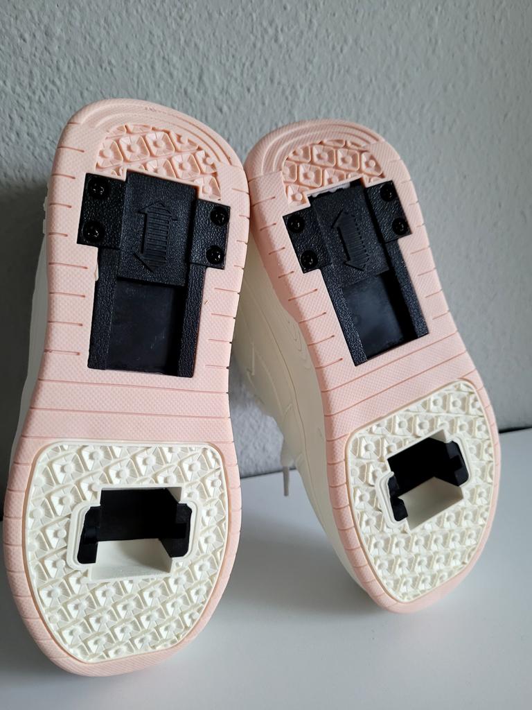 *baskets à roulettes convertibles de TUINANLE* 💥𝗟𝗶𝗲𝗳𝗲𝗿𝘇𝗲𝗶𝘁 Environ 2 semaines 💥𝗟𝗶𝗲𝗳𝗲𝗿𝘂𝗺𝗳𝗮𝗻𝗴 La livraison comprend 1 paire de chaussures dans la couleur et la taille correspondantes. Des lacets de couleur assortie et des outils sont inclus pour transformer les chaussures en patins à roulettes.. Les chaussures sont disponibles en seulement 2 coloris de la taille 35 à 40. Les chaussures sont disponibles en noir et rose. Je les ai commandées en rose en taille 35 pour ma fille. La pointure 35 correspond à une longueur de semelle intérieure de 23 cm. Cela correspond en fait à la pointure 35 selon le tableau des mesures. 💥𝗤𝘂𝗮𝗹𝗶𝘁ä𝘁 Les coutures ont l'air très bien réalisées, et la semelle est également bien collée. Les chaussures ont également réussi le test d'endurance de flexion, de traction et de compression..... Ce que je dois vous dire c'est que les chaussures sont relativement lourdes et encombrantes. Je trouve ça génial que les chaussures puissent être transformées en patins à roulettes avec quelques étapes simples expliquées dans la vidéo. Dans l'ensemble, j'ai été très impressionné par la qualité et surtout par le design des chaussures ; aucun fil ne dépasse et aucun résidu de colle n'est visible.. J'ai aussi été totalement impressionné par le design, les couleurs et le design sont très beaux ... Pour la composition des matériaux : Inconnu (probablement PU) 💥𝗙𝗮𝘇𝗶𝘁 De belles baskets qui se transforment rapidement en patins à roulettes en quelques étapes simples. Nous sommes à peu près fidèles à la taille. J'attends vraiment avec impatience mes nouvelles baskets. 😍 Si vous avez aimé mes photos, vidéos et critiques, suivez-moi pour d'autres critiques. 🏃 🎀 🙏 😊