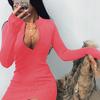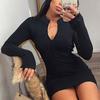 Mini Robe Décontractée pour Femmes Robe Sexy Coupe Slim Col en V Moulante Manches Longues