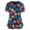 Uniforme d'infirmière Femmes Manches Courtes Hauts Col en V Uniforme de Travail Haut de Blouse Médicale Dames Soins Infirmiers