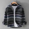 Chemise homme automne et hiver, style streetwear, imprimé ethnique à rayures, décontractée, manches longues, épaisse, brossée, vintage, ample