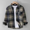 Automne et Hiver Vêtements Homme Chemise à Carreaux Rétro Manches Longues Chemises Amples Brossées avec Poche Chemise Décontractée Quotidienne pour Homme