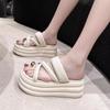 fashion 2024 Women Clip Toe Chunky Platform Sandals High Heels Gladiator Slippers Woman Trendy Summer Bling Beach Leisure Flip Flops 7CM