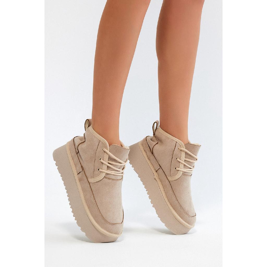 Bottes en daim beige à lacets pour femmes, coupe confortable, en peau de mouton retournée