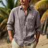 Chemises en coton et lin pour hommes, col rabattu, chemise hawaïenne unie, légère, respirante, chemise blanche décontractée, grande taille, streetwear