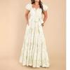 YYFS Robes décontractées à manches courtes et col en v pour femmes, mode été printemps, taille haute