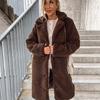 Automne et hiver épais à manches longues revers veste femme grande taille en peluche polaire chaud longs manteaux femmes lâche décontracté solide femmes vestes 24959
