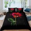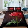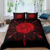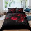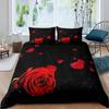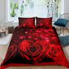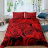Ensemble Housse de Couette Rose Rouge Ensemble de Literie Imprimé Fleur de Rose Style Romantique Frais Taille King Housse de Couette avec Taies d'Oreiller pour Amoureux