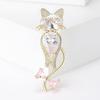 Broche Chat Mignon Dessin Animé Zircon Micro-Incrusté, Accessoires de Vêtements Polyvalents Simples et Tendance Corsage