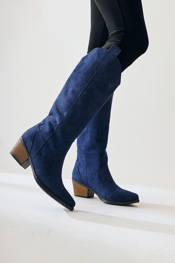 Women Modern Stylish Fashion Boots Boots Faux Leather Suede Lhena Navy Blue Suede Western Pull On Boots