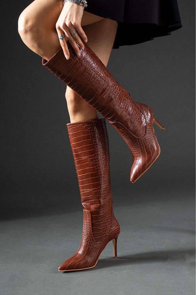 Bottes de mode modernes et élégantes pour femmes, bottes en Faux cuir Leo Crocodile à talons hauts