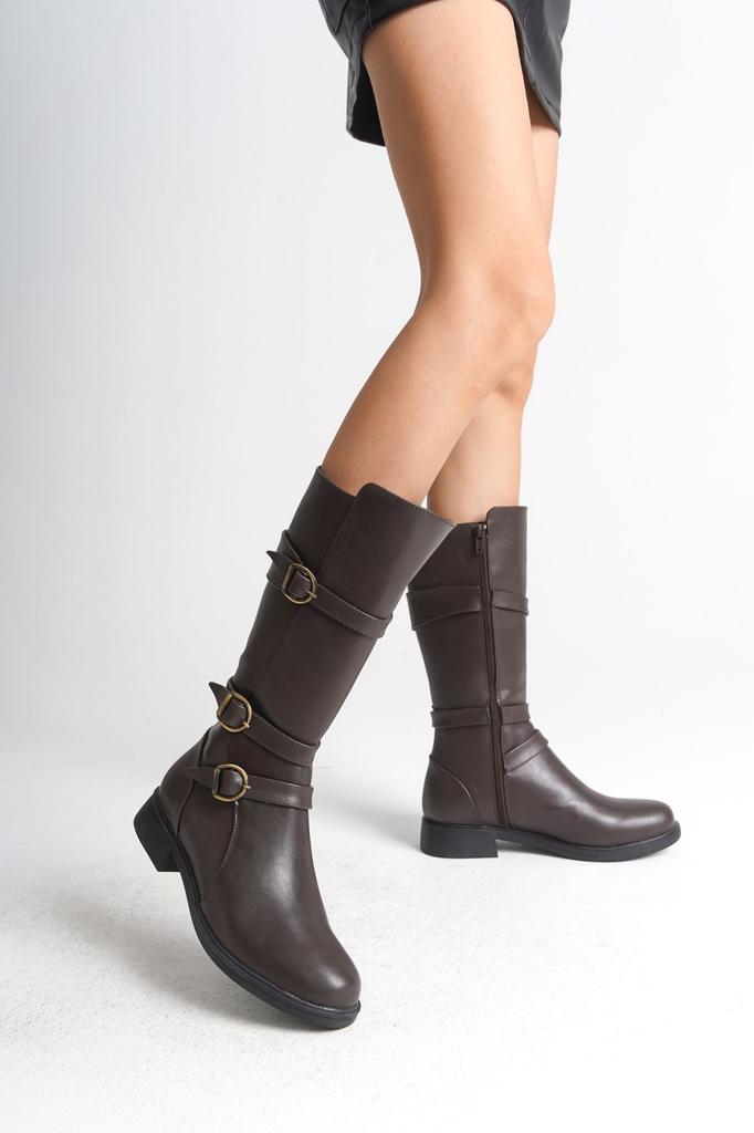 Women Modern Stylish Fashion Boots Faux Leather Metal Buckle Biker Zipper Boots