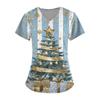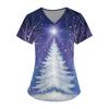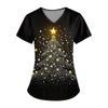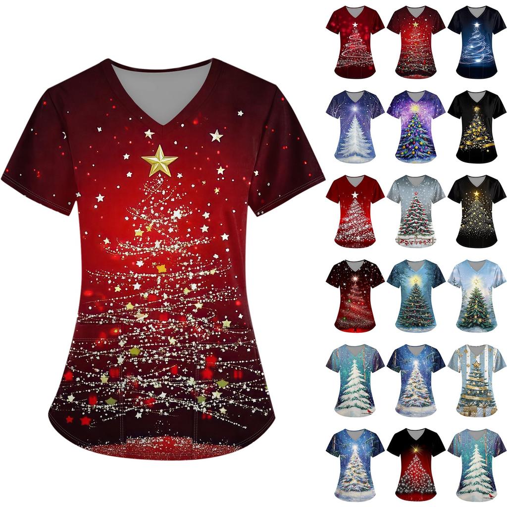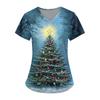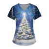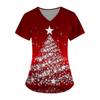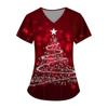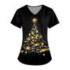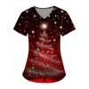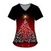 Hauts d'uniforme de travail imprimés grande taille pour femmes, col en V croisé, imprimé Halloween, manches courtes, t-shirts amusants, t-shirts de travail avec poches