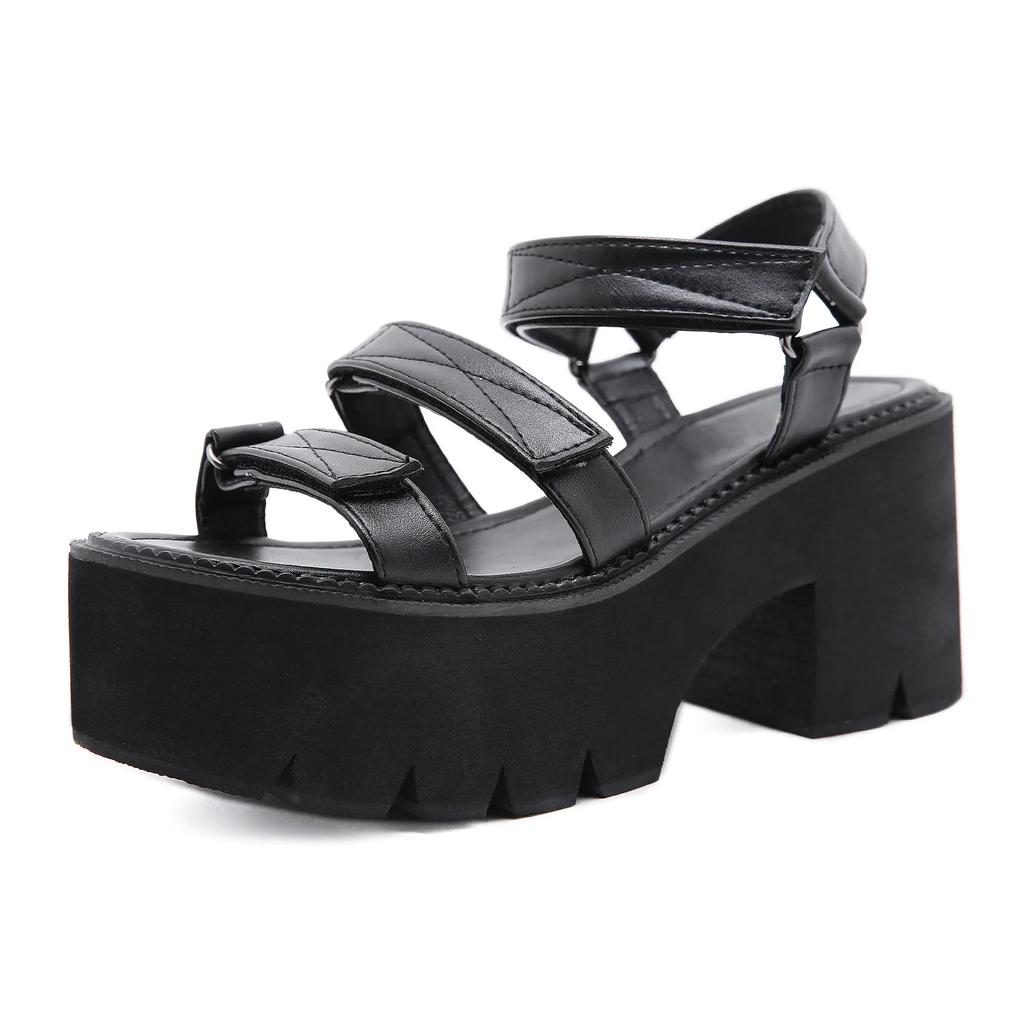 Sandales à plateforme noires pour femmes Été 2024 Chaussures pour femmes Talon bloc Mode Boucle Sandales décontractées Pas chères Haute qualité