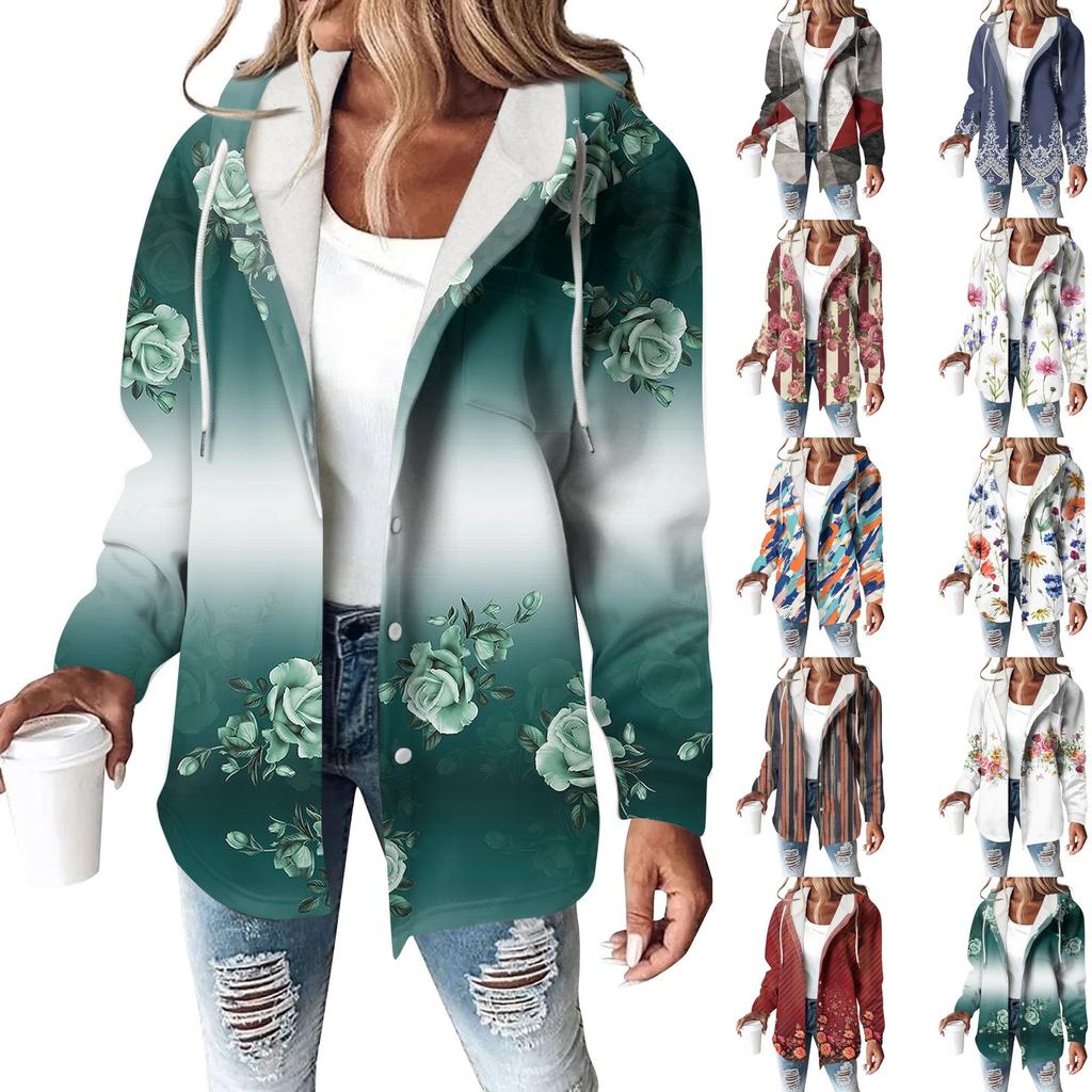 Sweat à capuche pour femme, sweat-shirt chaud d'hiver, bouton, cordon de serrage, veste imprimée, manteau
