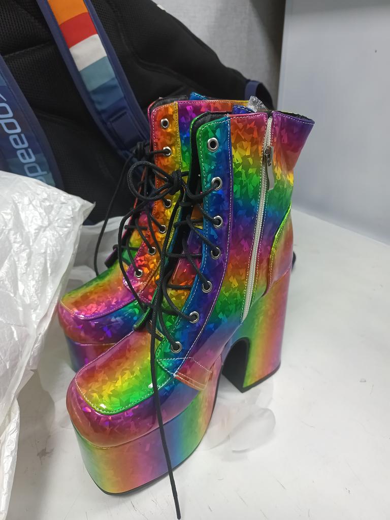 Bottes hautes à plateforme pour femmes à la mode 2024 Chaussures d'hiver à lacets sexy Noir Marron Talon bloc Longues Bottes Chaussures pour femmes Grande taille 48
