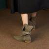 Mode NOUVEAU 2024 Femmes Bottes en Cuir Fait Main Haute Qualité Plates Vert Armée Bottines avec Sangle Nœud Chaussures Mode Automne Hiver