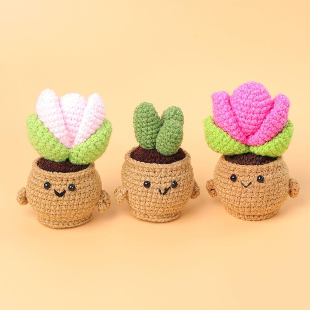 Figurine en pot de cactus tulipe au crochet fait à la main en fil tricoté fini