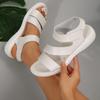 Sandales compensées pour femmes, nouvelles chaussures décontractées à la mode pour l'été 2024, talons bas, sandales de créateur de couleur unie